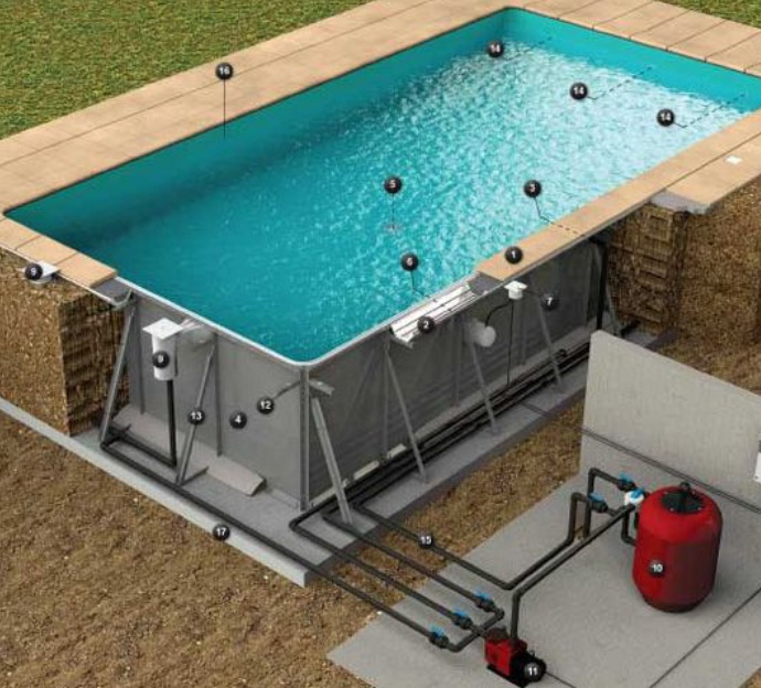 Diseño y cálculo del sistema de recirculación del agua en piscinas privadas y públicas.